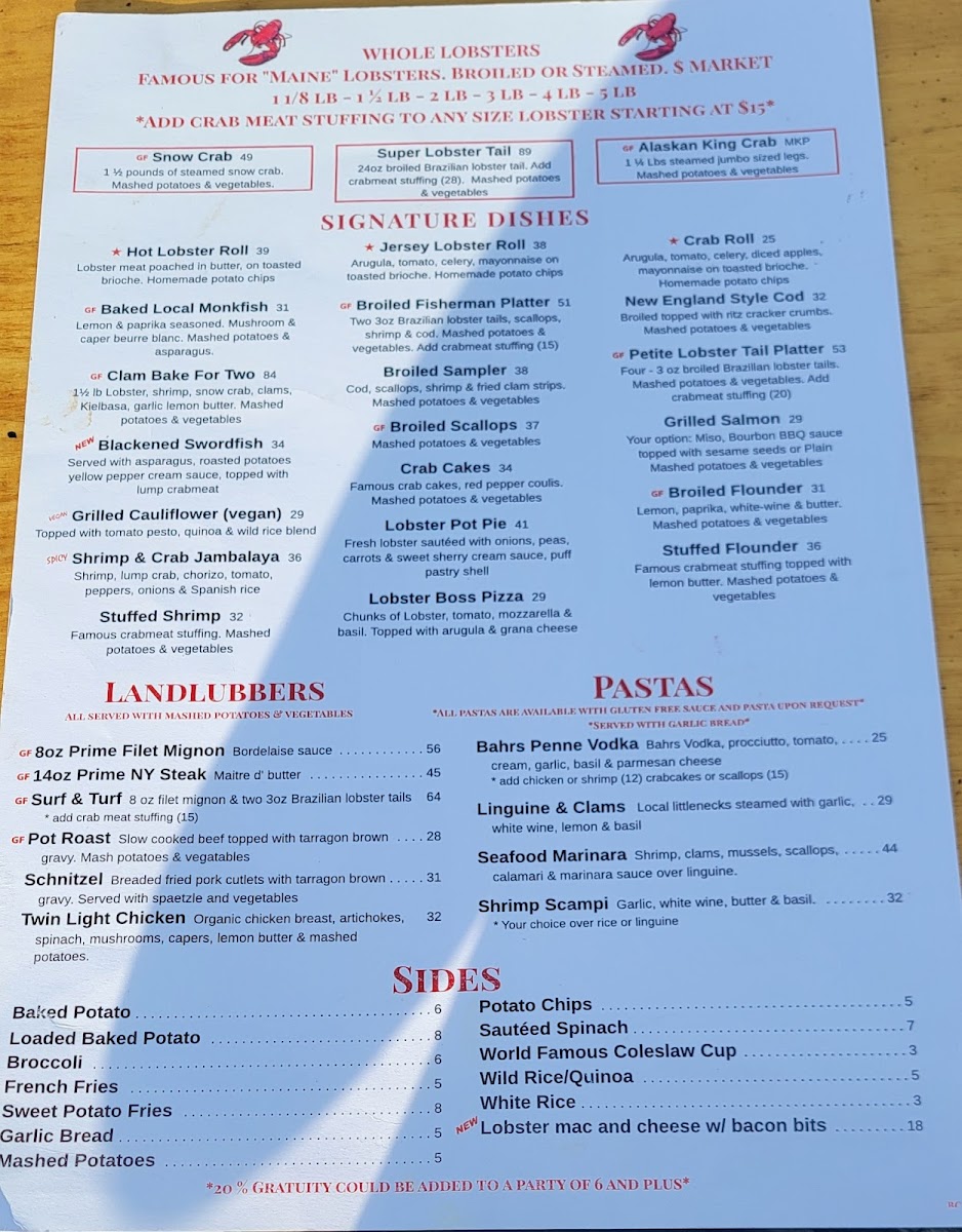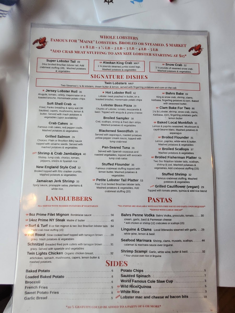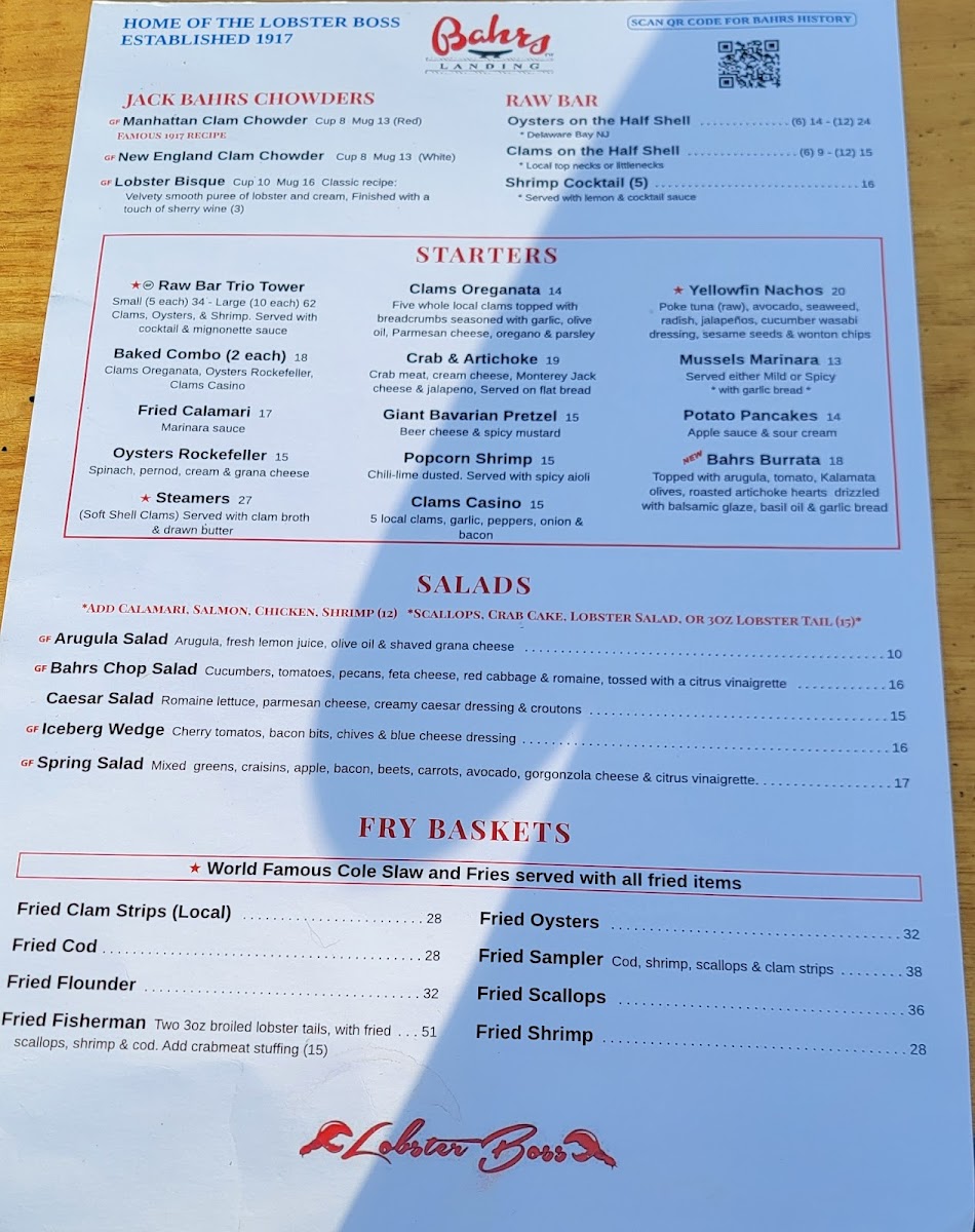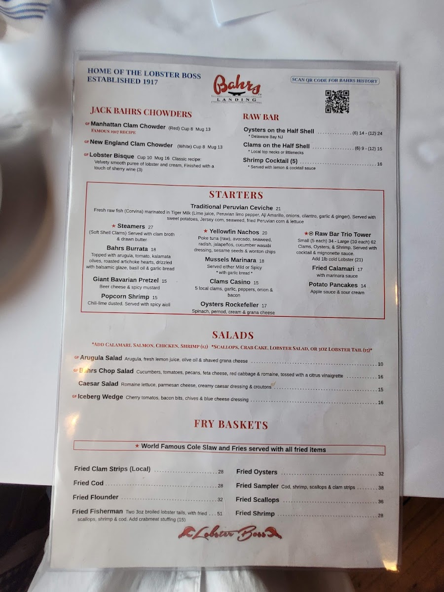Bahrs Landing Famous Seafood Restaurant & Marina Menu